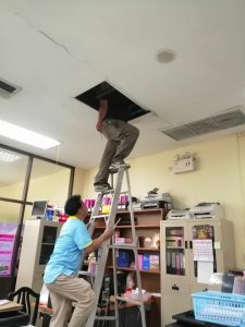 กองอาคารสถานที่และยานพาหนะ โดยกลุ่มงานอาคาร ดูแลงานไฟฟ้าเครื่องปรับอากาศ เข้าดำเนินการซ่อมบำรุงแก้ไขระบบการทำงานของปรับอากาศภายในห้องสำนักส่งเสริมพระพุทธศาสนาและบริการสังคม อาคารสำนักงานอธิการบดี (ห้อง ๑๐๑) โดยการเปลี่ยนสายพานเครื่องมอเตอร์และตรวจเช็คระบบไฟฟ้า และน้ำยาเครื่องปรับอากาศ (นายนเรศ ตรงต่อกิจ นายช่างเทคนิค นายวรวุฒิ ระมั่งทอง นายช่างเทคนิค นายสมัคร นามอรรถ นายช่างเทคนิค และนายสุพจน์ พลรัมย์ นักการภารโรง) บุคลากรกองอาคารสถานทีและยานพาหนะเข้าดำเนินการ :